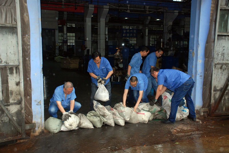 為了確保職工生命安全及企業財產不受損失,當天上午8點剛上班,星火機床公司防汛領導小組緊急行動,冒著大雨排查生活區、廠區排洪情況及安全隱患并商議解決辦法。