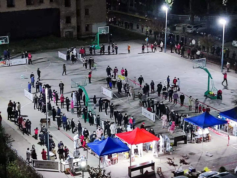 附件公司黨員職工組成抗疫突擊隊,為“黃碼”人員進行核酸檢測清掃環境、搭帳篷、擺桌子,保障照明,維持秩序。