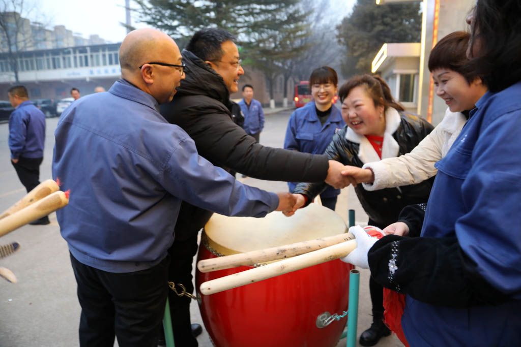 2月18日(正月初九)早上7點40分左右,星火機床集團公司大門口鑼鼓喧天、鞭炮齊鳴、煙花四射。集團公司領導班子蔣保權一行伴隨著歡快的音樂旋律和絢麗的煙花,隊列迎接每一位上班的職工,向廣大職工如期返回公司工作表示誠摯的敬意并為他們送上新春的問候!大家見面之后臉上洋溢著燦爛的笑容并相互拜年問好。